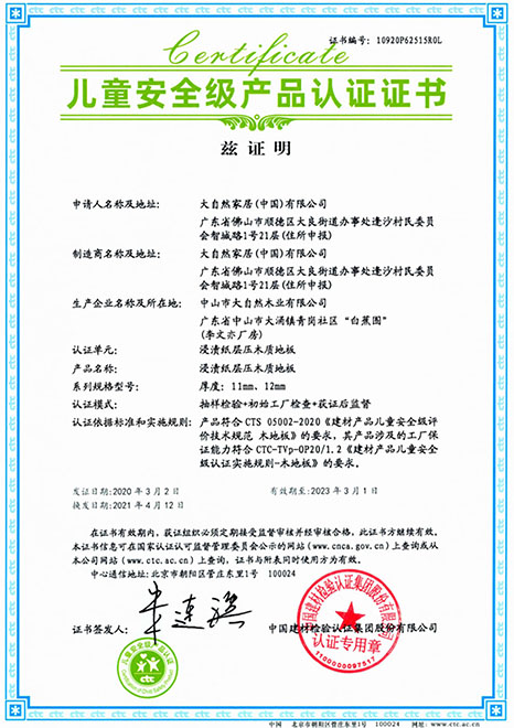 在準(zhǔn)確把握“環(huán)保、健康”的消費(fèi)需求之后,大自然家居研究院通過(guò)技術(shù)攻關(guān),開發(fā)出零醛智造技術(shù)。這也成為大自然強(qiáng)化地板的“健康密碼”,它采用高防潮高密度MDI環(huán)保基材,生產(chǎn)過(guò)程零醛添加,甲醛釋放限量采用新國(guó)標(biāo)最嚴(yán)苛的ENF級(jí),產(chǎn)品獲得“兒童安全級(jí)認(rèn)證”。