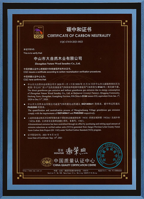 在木作領域深耕了28年的大自然家居,始終以“擔環保責任,普健康生活,做健康家居”作為其企業使命,“綠色健康”是其一以貫之的品牌基因。據了解,大自然全屋定制整合了大自然家居“零醛智造”、“高分子水漆”等多項技術,無論是實木地板,還是木門、墻板,或者櫥柜、衣柜等家居產品都可達國家E1、國際E0或歐洲最高EN300標準。同時,大自然家居還積極踐行國家“3060雙碳戰略”,早于2021年9月便獲得了中國質量認證中心(CQC)頒發的《碳中和證書》,走在了同行業企業綠色發展的前列。