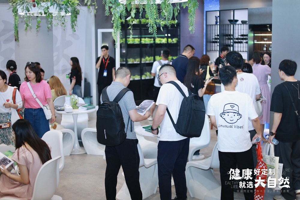 建博會期間,大自然家居攜500+㎡「橡木生活」意象館 | 地門墻柜一體健康整家定制形象亮相,廣受好評。現場人氣超預期火爆,超額實現招商目標。