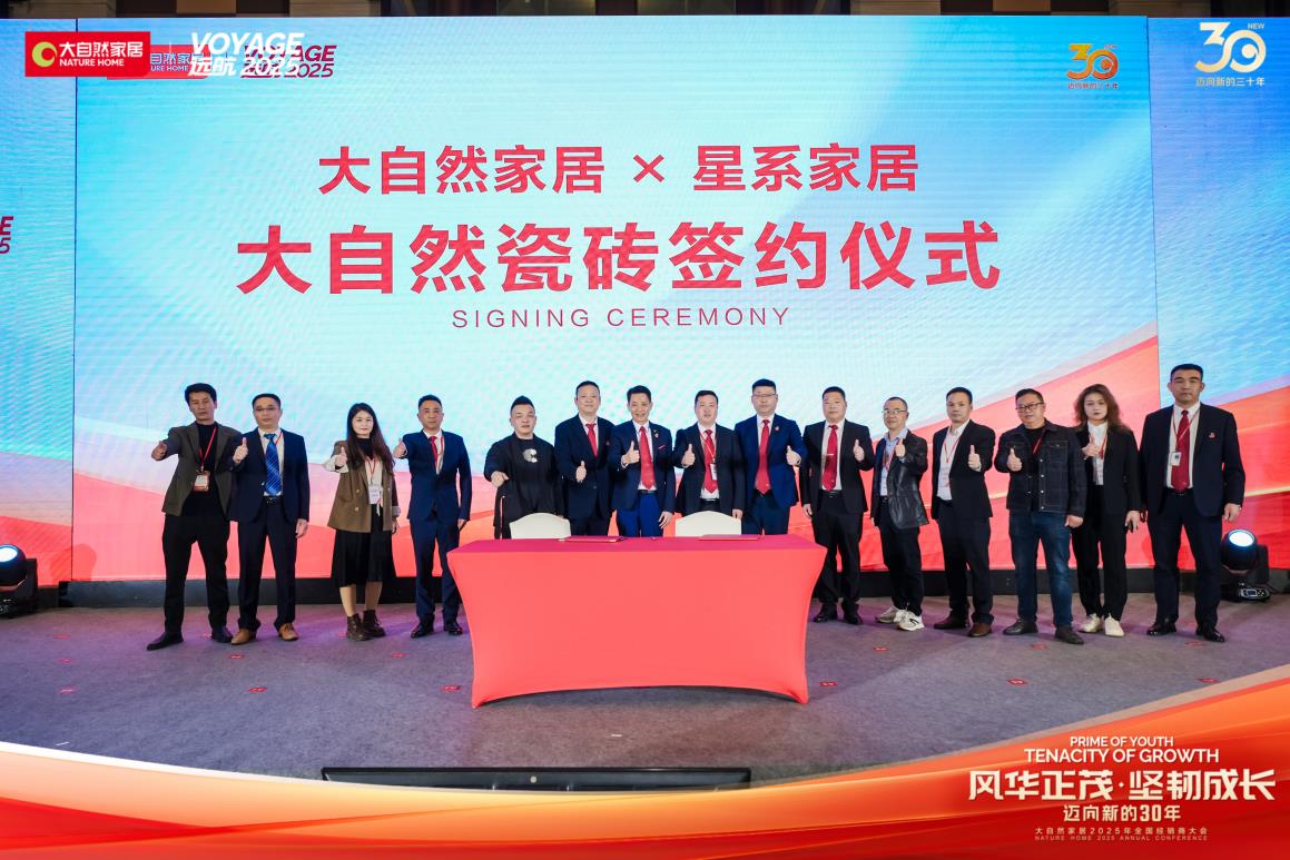 會上,在與會嘉賓的見證下,大自然家居與星系家居正式簽署了瓷磚合作協議。與此同時,大自然家居旗下的德智家品牌與金朋科技確立了戰略合作。本次合作將在優勢互補、互利共贏、共同發展的基礎上,助力大自然家居跨界多品類融合。