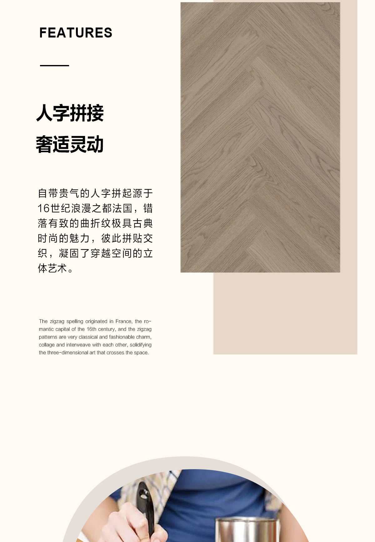 | 獨特工藝 | 人字拼 |