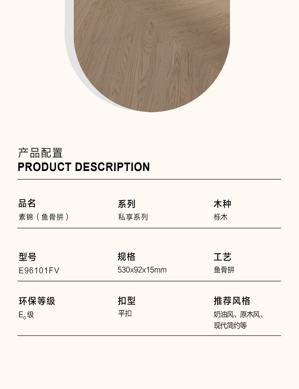 | 產品名稱/型號 | 素錦E96101FV(魚骨拼) |