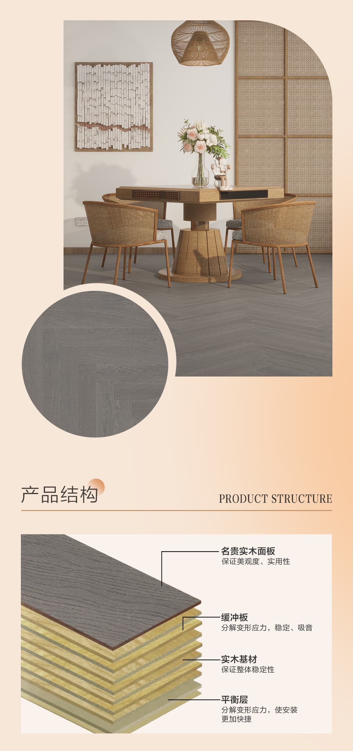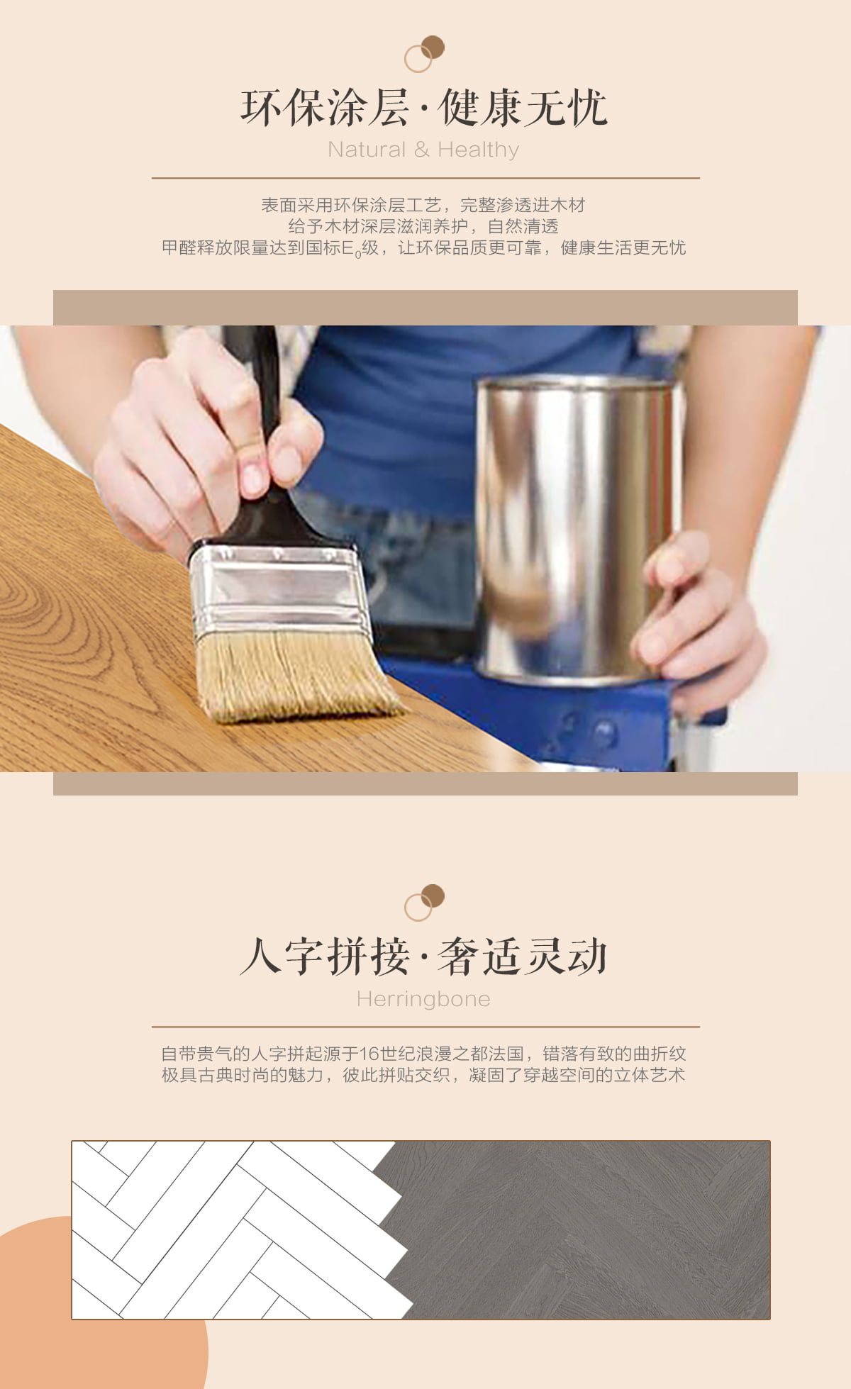 | 獨特工藝 | 人字拼 |