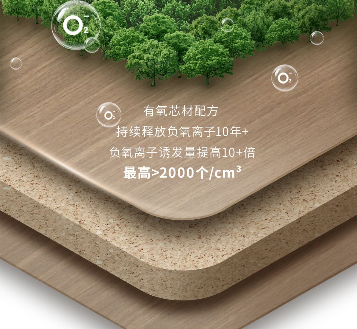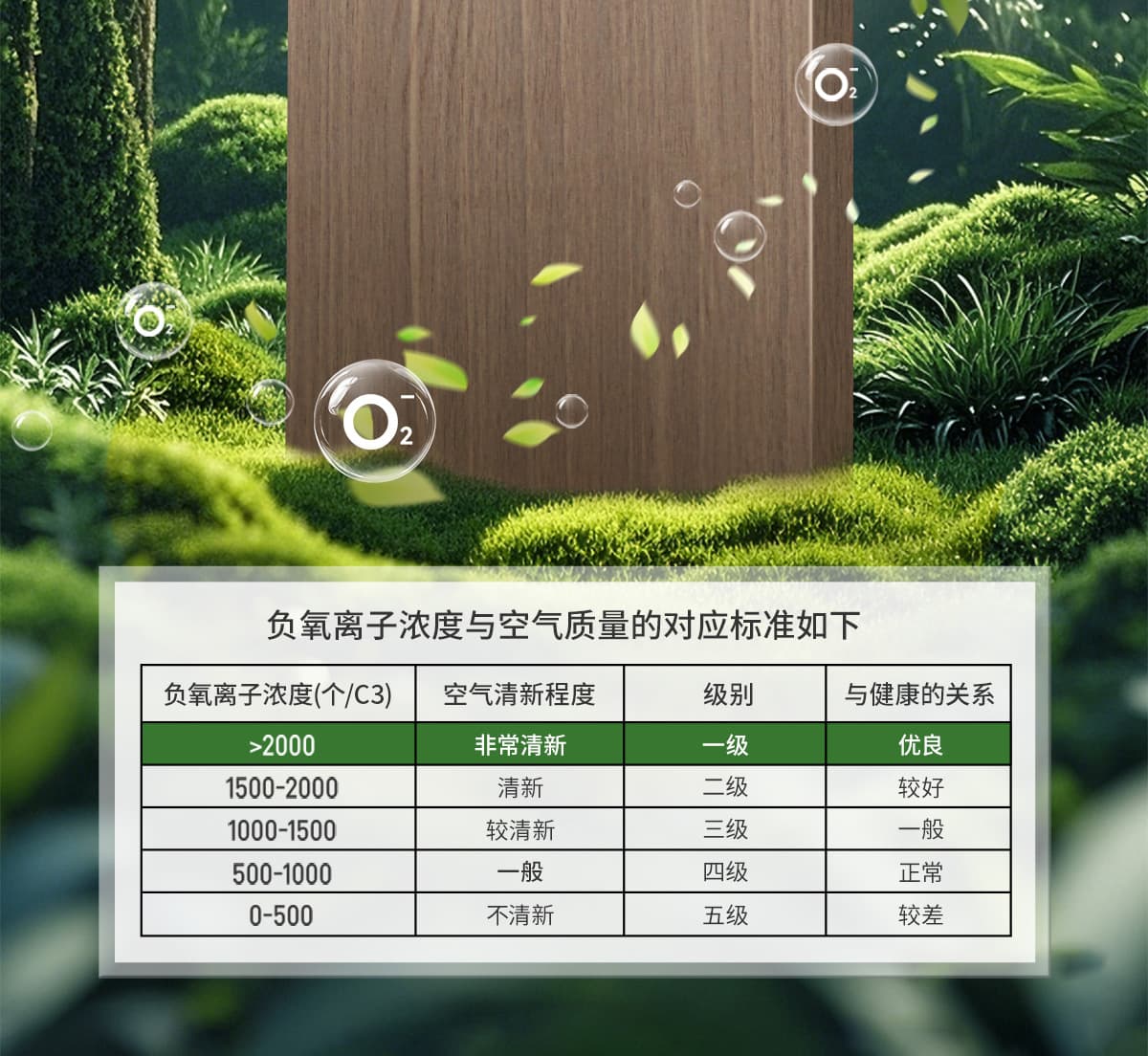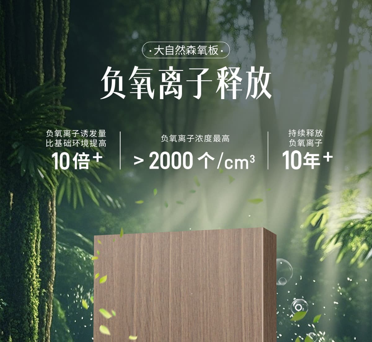 誘發空氣負離子量 比基礎環境提高10倍+